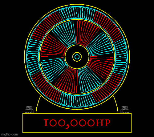 Here's a little animation of an electric motor. It gradually speeds up until it's going too fast for